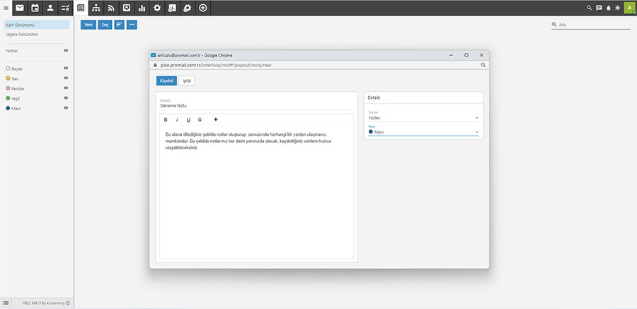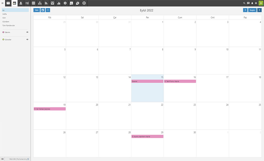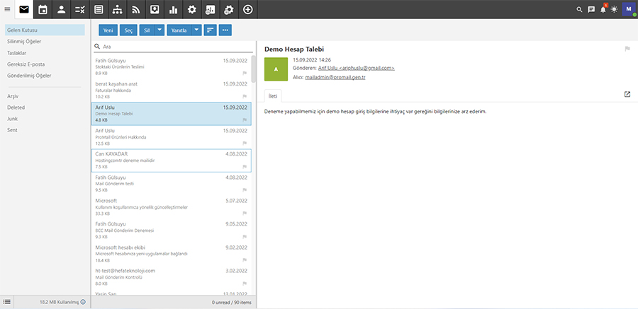 Promail.com.tr kurumsal e-posta hizmetinde bulunan gelişmiş paylaşımlı takvim sayesinde tüm önemli günleri, toplantıları ve tarihleri not alarak, gözden kaçmasının önüne geçebilirsiniz. Ayrıca sahip olduğu ekip içi paylaşım özelliği ile ortak toplantıları, proje teslim tarihlerini ve tüm özel günleri dilediğiniz ekip arkadaşınız ile kolayca paylaşabilirsiniz. Zamanı ve günü programlama konusunda size oldukça yardımcı olacak bu özellik ile çalışma saat ve günlerinizi daha verimli hale getirebilirsiniz.